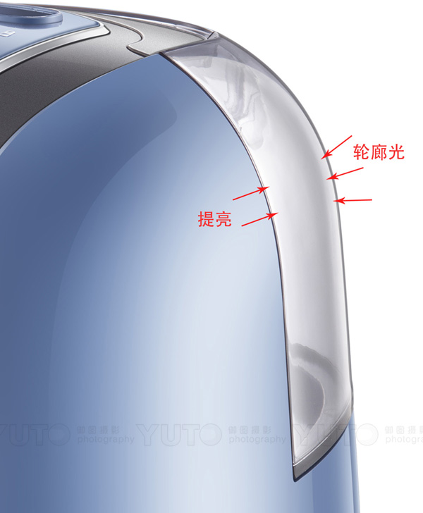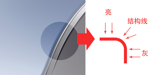 産(chǎn)品兩側的邊緣要處理(lǐ)出向後延伸的光影效果,由于反光闆的作(zuò)用(yòng),兩側邊會有(yǒu)一道細長(cháng)的輪廓光線(xiàn)。處理(lǐ)好之後産(chǎn)品的體(tǐ)積感會更強。