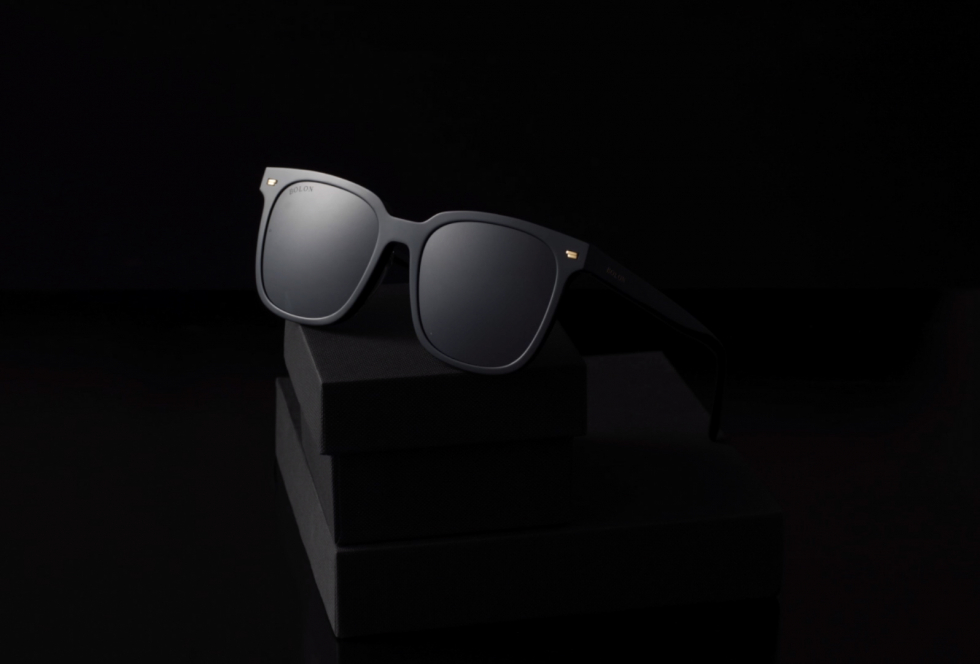 眼鏡本身放到一個皮質(zhì)紋理(lǐ)的盒子上,用(yòng)這種紋理(lǐ)的質(zhì)感對比凸顯眼鏡本身的這種鋼琴黑的質(zhì)感,桌面我們直接用(yòng)一個黑色啞光的玻璃闆來代替,背景我們直接用(yòng)一個黑旗就可(kě)以了