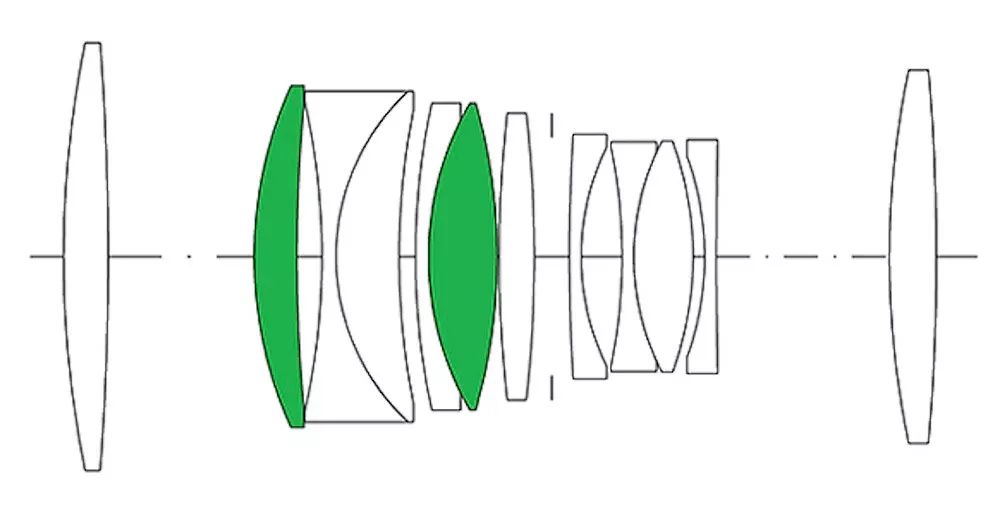 老蛙100mm的光學(xué)結構為(wèi)1012片。不過從上面的圖片看來,我找不到10組,看起來隻有(yǒu)9組。鏡頭結構包括兩片低色散玻璃,這就是為(wèi)什麽鏡頭名(míng)稱中(zhōng)有(yǒu)“APO”三個字母的原因。